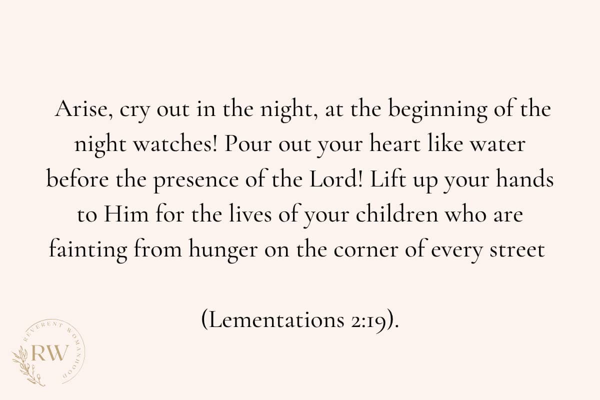 Lord, we lift up our children to You. We ask, we pray, we petition that their whole lives and hearts would be captivated by You. Strengthen them in the inner man. Please help them to be quick to hear what the Spirit of the Lord has to say to them. May they be slow to speak and slow to anger. Please soften their hearts, all for Your glory, so that they may live lives well pleasing to You. Convict my children of sin, break their hearts from what breaks Yours, James 1:21 states, "Therefore lay aside all filthiness and overflow of wickedness, and receive with meekness the implanted word, which is able to save your souls." Please, O LORD, bring to remembrance the scriptures, the worship song that used to delight their souls and give them sweet joy. Please, Lord, destroy the works of the enemy, let the fire of God fall upon the enemy's camp. Please rescue them out of darkness and into Your marvelous light. Reveal to them their identity in Christ Jesus. Thank You, LORD, that You love them more than I ever could. In Your Holy Mighty Name we pray, Amen.
